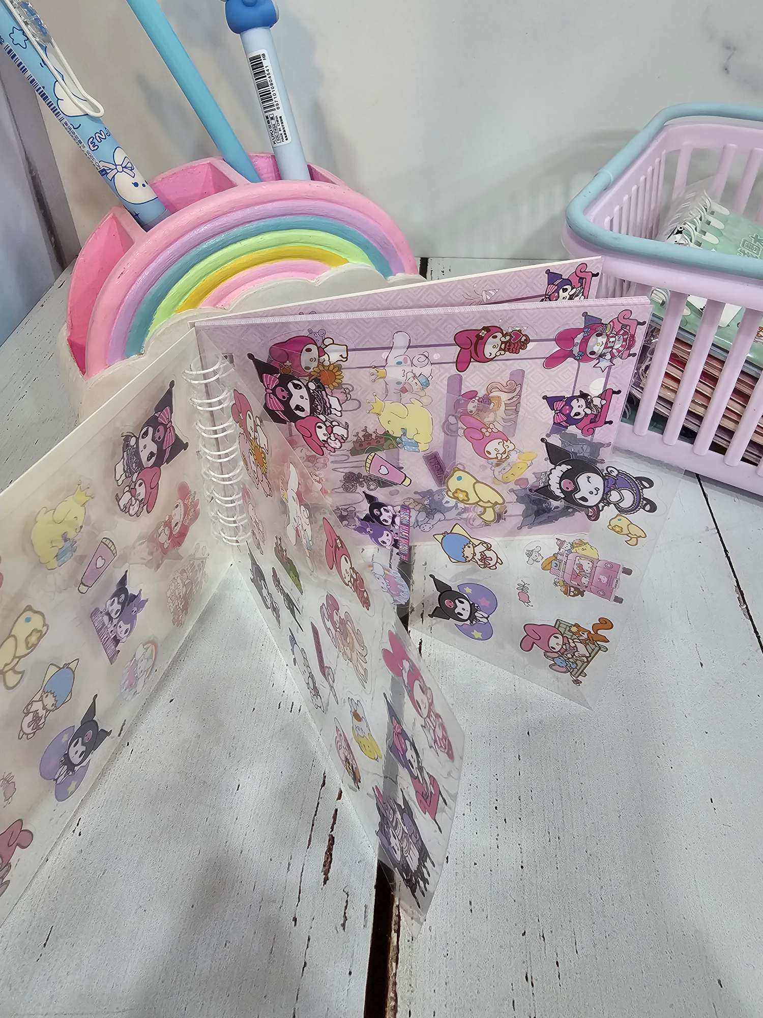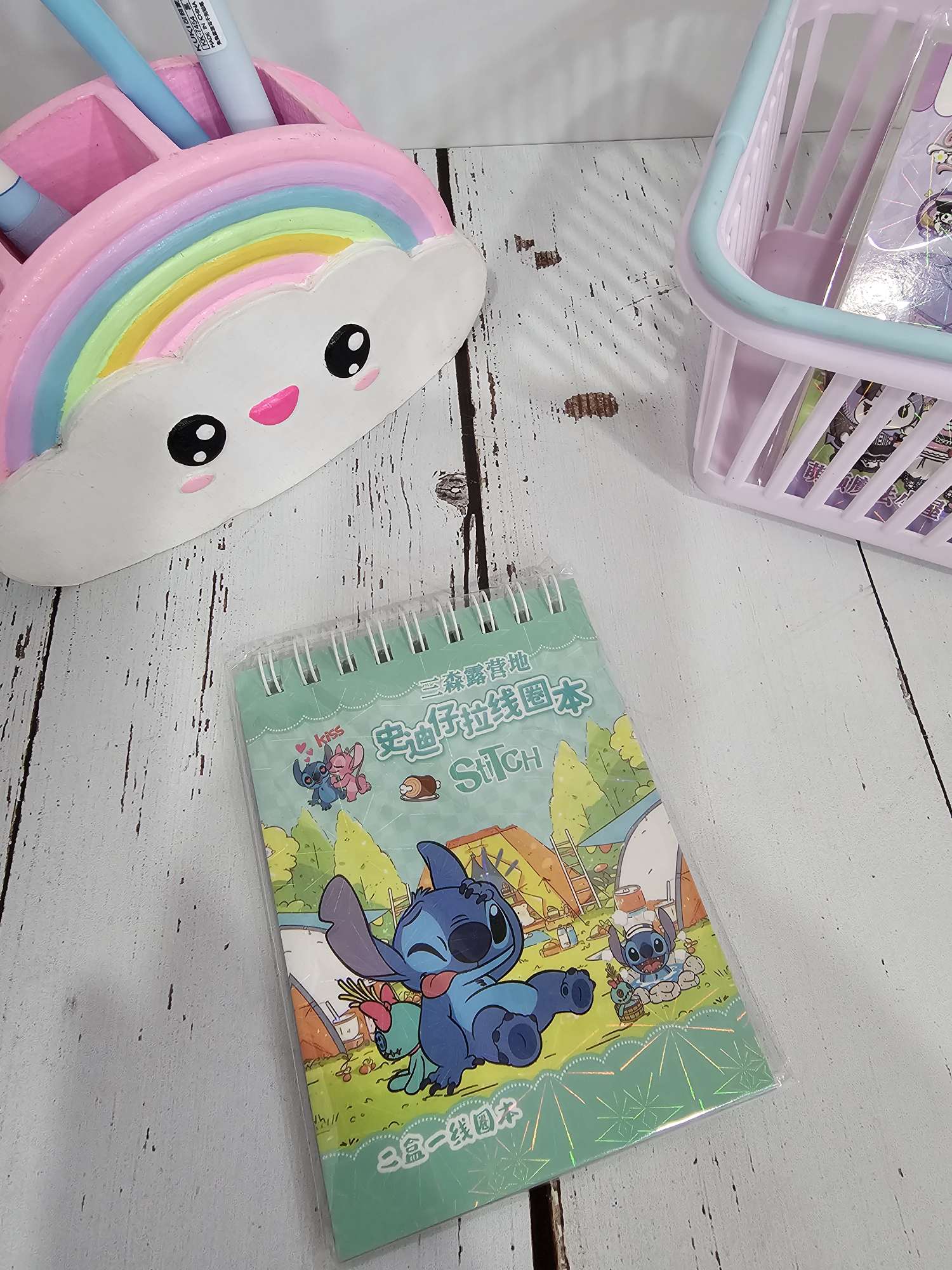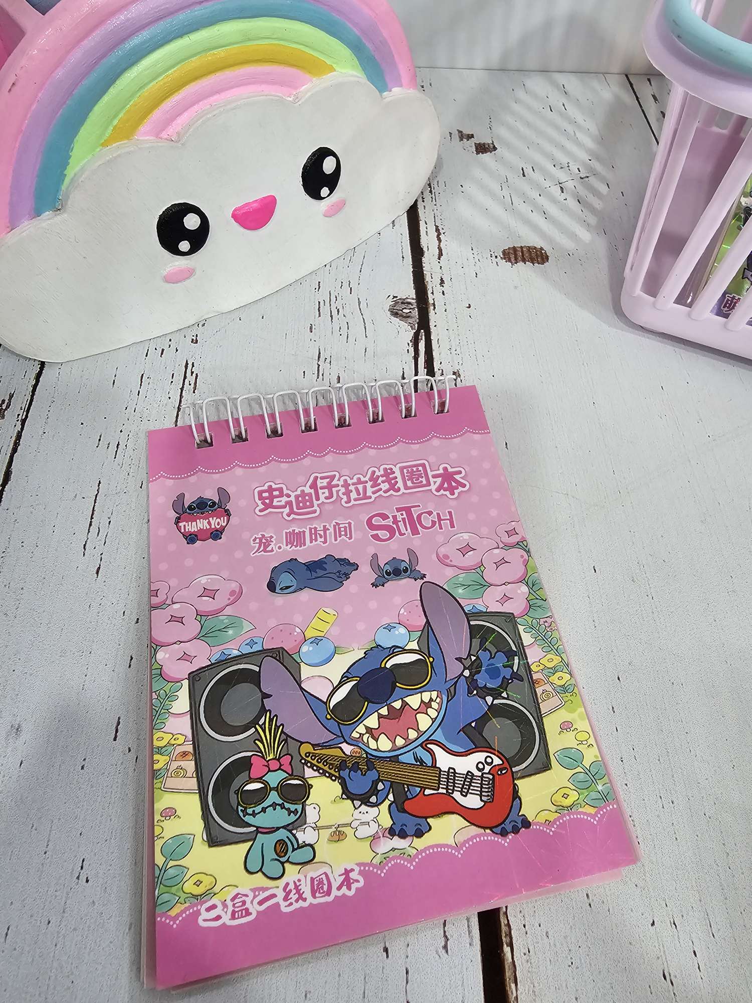 دفتر استیکری سیمی که شامل چند صفحه استیکر برش خورده ضدآب،و چند صفحه دفتریادداشت طرحدار با طرحهای ترند استیج،کرومی و ملودی