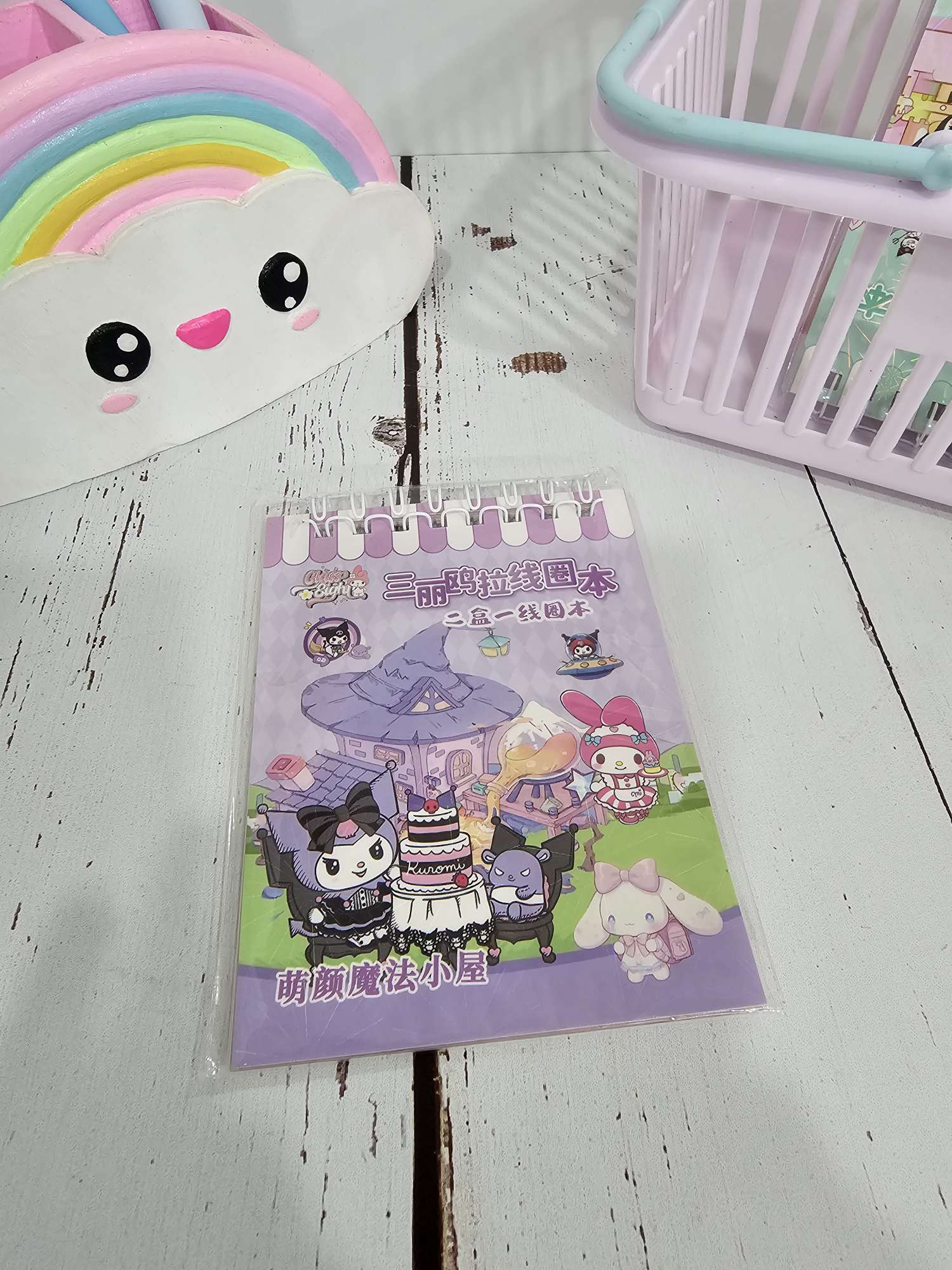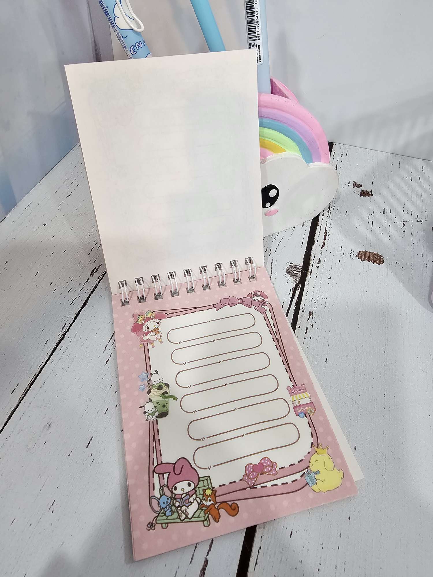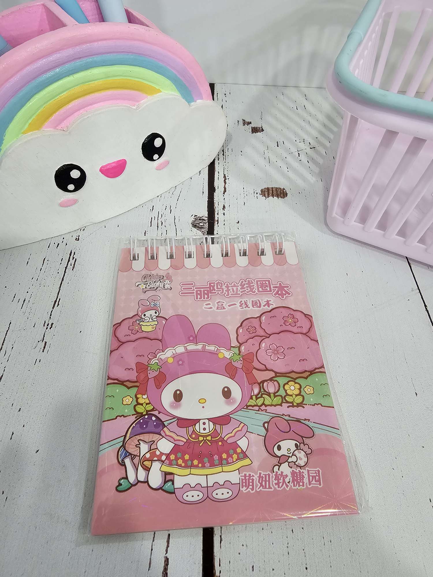 دفتر استیکری سیمی که شامل چند صفحه استیکر برش خورده ضدآب،و چند صفحه دفتریادداشت طرحدار با طرحهای ترند استیج،کرومی و ملودی