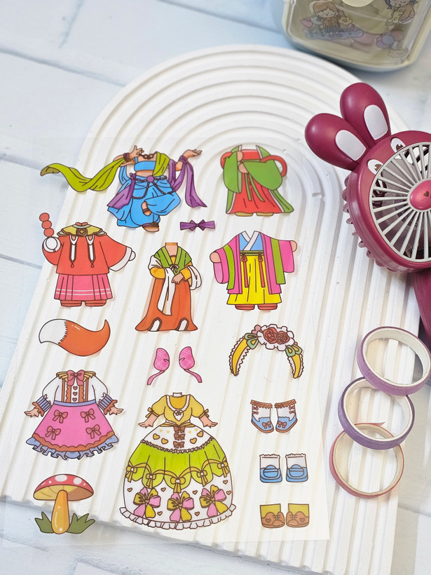 چند ورق ادمک و چند ورق لباس داره که میتونید مدلهای مختلف لباس رو تن ادمک ها کنید